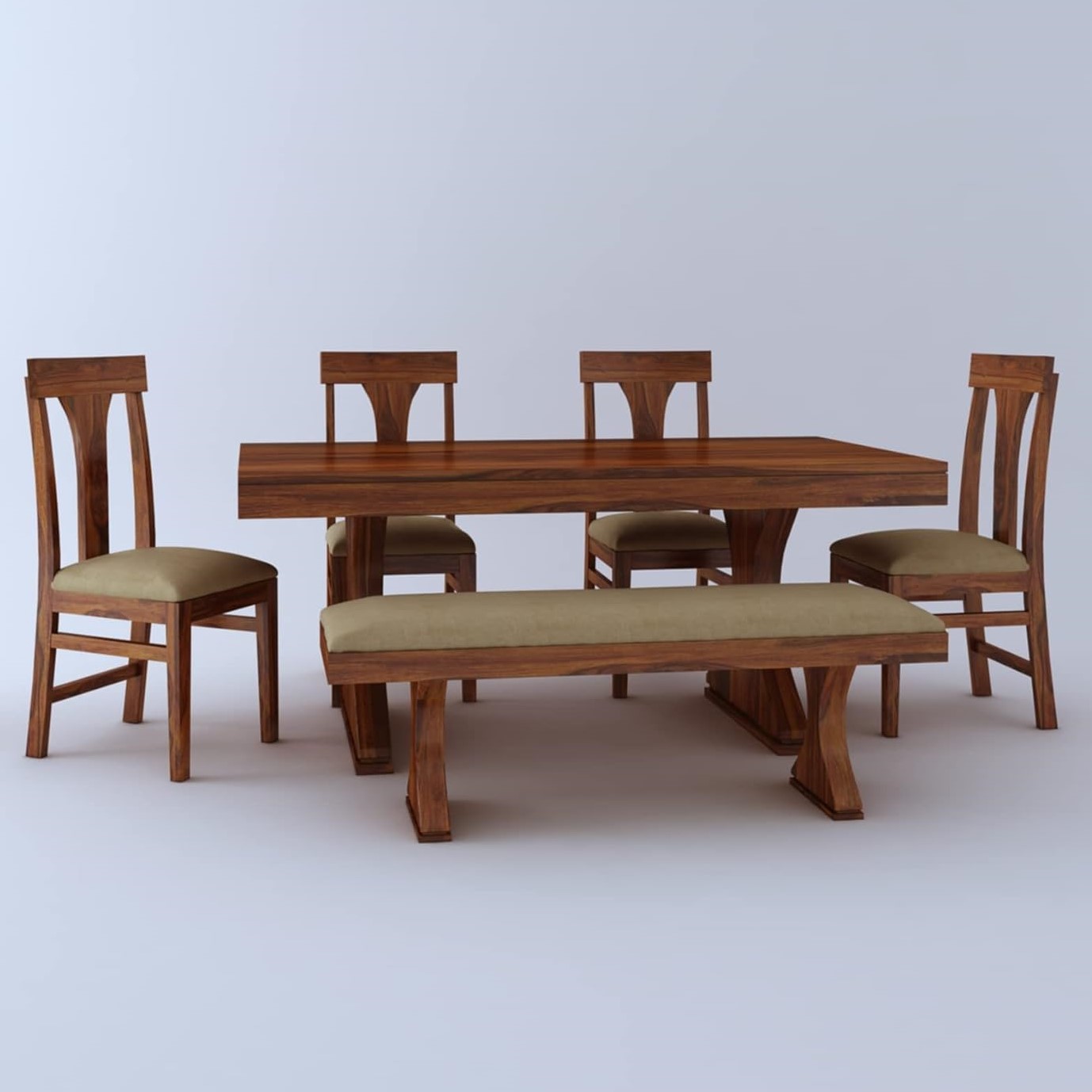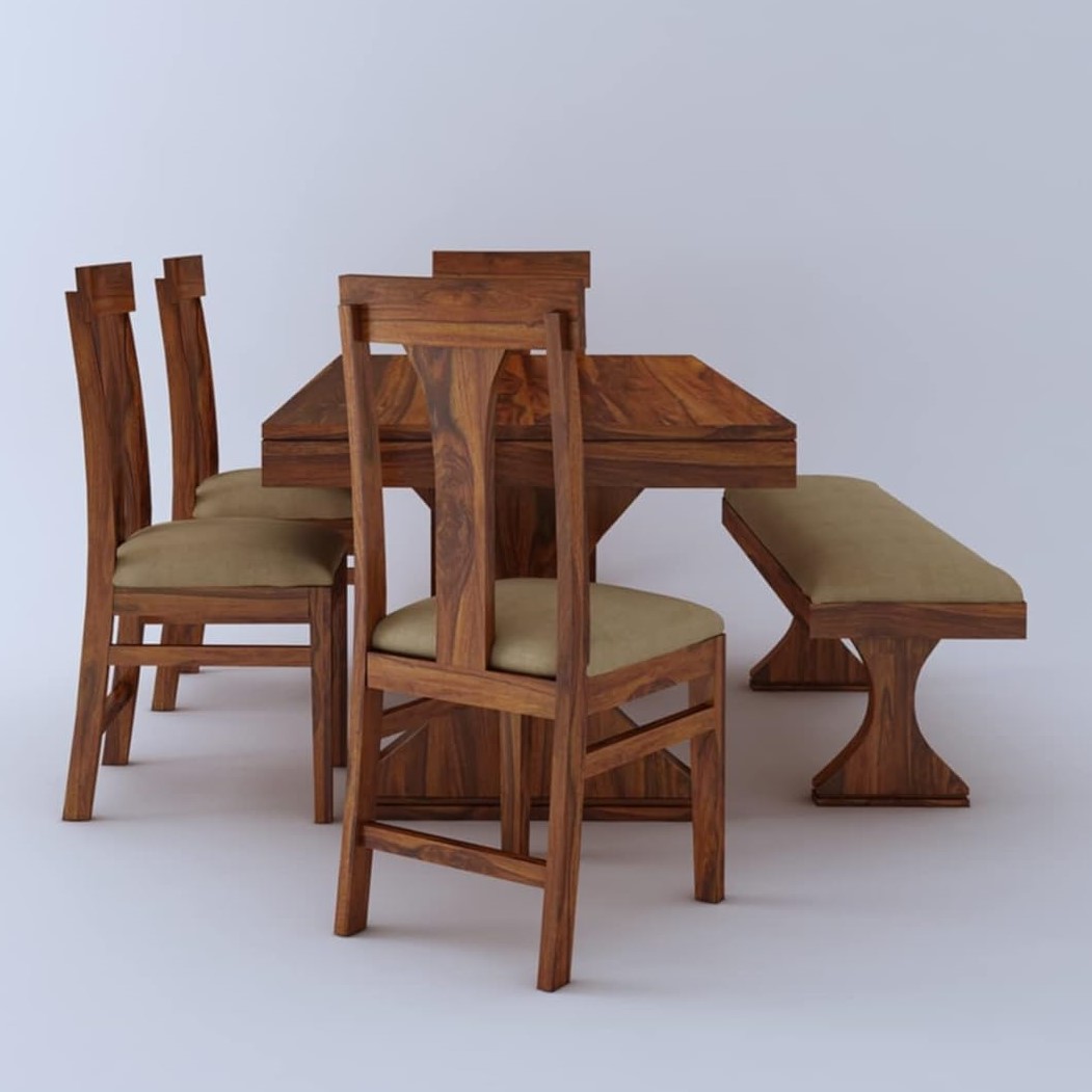 Solid Sheesham Wood 6 Seater Dining Table Set